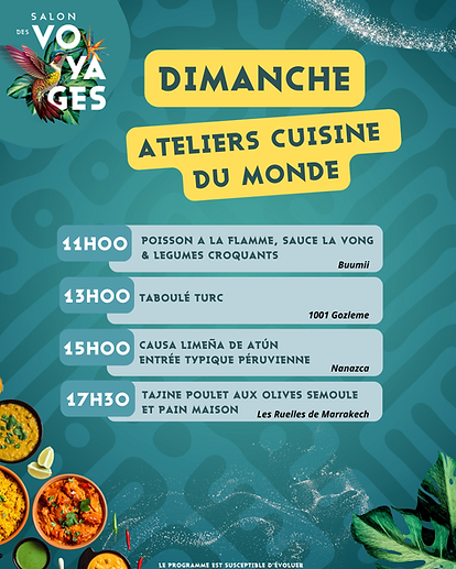 Durant tout le week-end, vous avez la possibilité d'écouter plus de 20 conférences sur des thèmes variés, des tables rondes pour les retraités baroudeurs, participer à des démonstrations culinaires et assister à des spectacles de danses, musiques et défilés du monde en partenariat avec le World Festival d'Ambert.